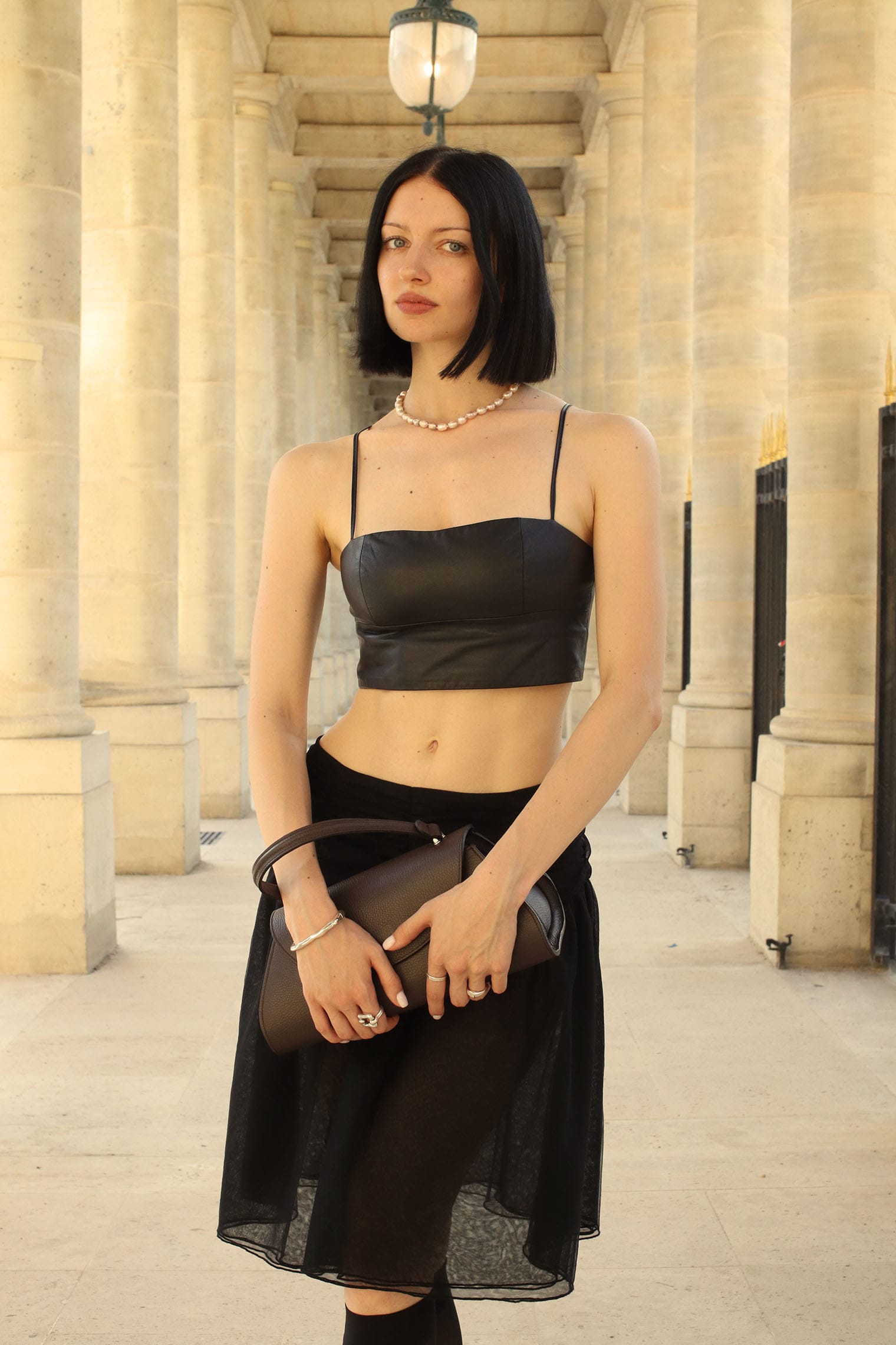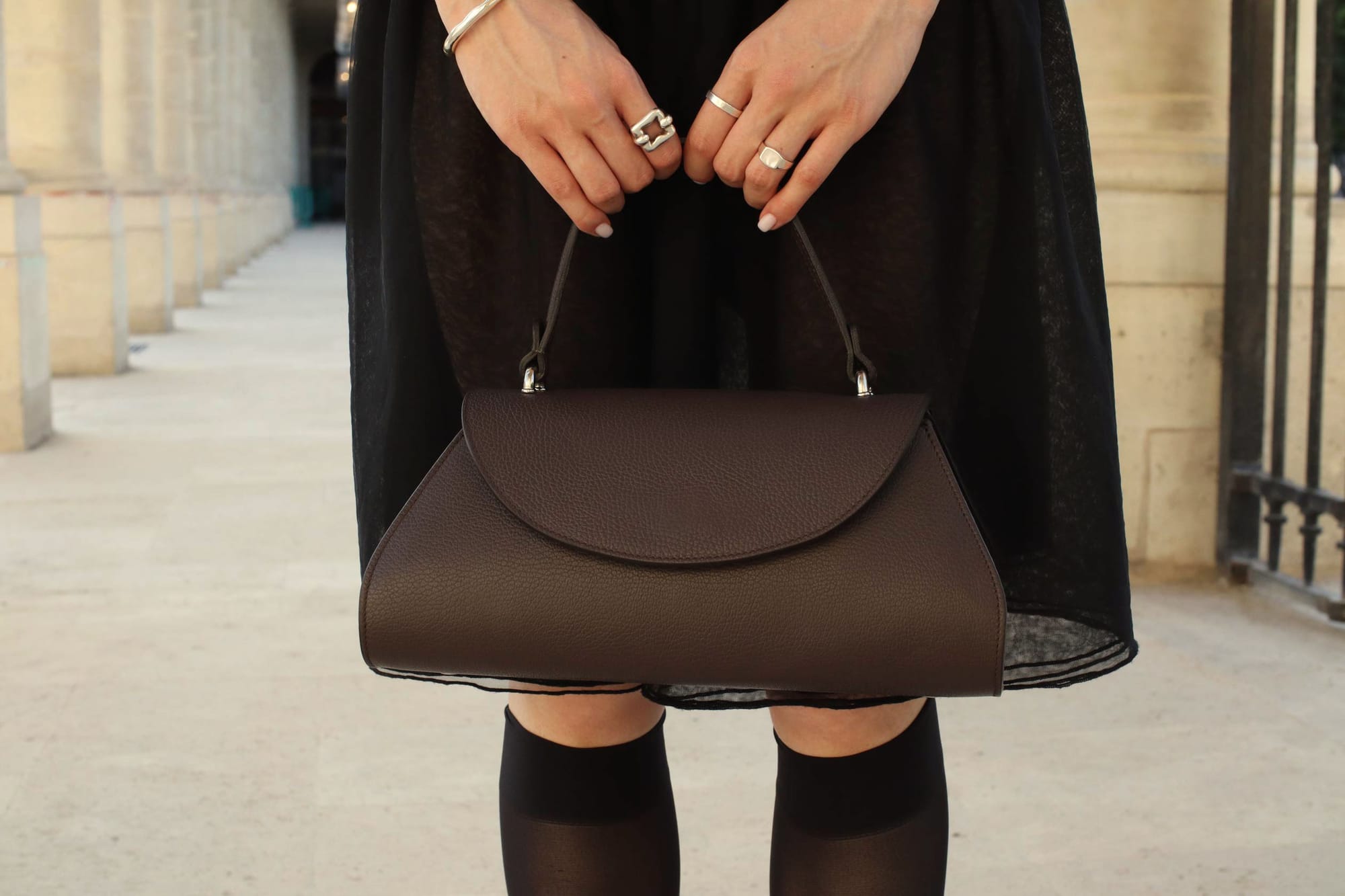 AMELIE подхватывает моду на форму, которая придаёт образу интеллект. Сбоку – объёмная, удобная, готовая к вашему ритму. Фронтально – сдержанная и элегантная, как воспоминание о времени, когда аксессуары были архитектурой. Она расширяет границы стиля, соединяя несоединимое.